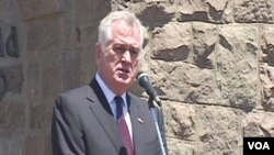 Qindra serbë morën pjesë sot në manifestimet në Gazimestan dhe Graçanicë afër Prishtinës me rastin e 625 vjetorit të Betejës mesjetare të Kosovës. Në manifestime ishte edhe presidenti i Serbisë Tomislav Nikoliç, i cili përsëriti qëndrimin kundër pavarësisë së Kosovës por në favor të bisedimeve për normalizimin e marrëdhënieve ndërmjet të dyja vendeve. Siç njofton korrespondenti ynë Besim Abazi, fjalimi i tij në Gazimestan u ndërpre nga akuzat për tradhti që i bënë atij disa nga pjesëmarrësit.