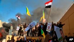 Forcat e sigurisë së Ambasadës së Shteteve të Bashkuara në Bagdat hodhën të martën gaz lotsjellës ndaj protestuesve që thyen perimetrin e jashtëm të kompleksit. Disa prej mijëra protestuesve ndezën zjarre, goditën me gurë dhe valëvitën flamujt e grupeve paraushtarake. Presidenti amerikan Donald Trump fajësoi Iranin për thyerjen e perimetrit të sigurisë së ambasadës amerikane në Irak.