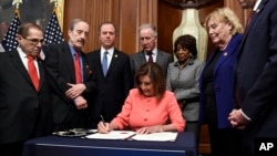 “Dhoma e Përfaqësuesve votoi pro akuzave për shkarkimin e Presidentit të Shteteve të Bashkuara, një vendim që hyn në histori”, tha Kryetarja e Dhomës së Përfaqësuesve, Nancy Pelosi.
