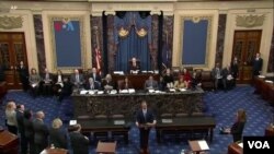 Senati me shumicë republikane hodhi poshtë të premten një propozim të demokratëve për të thirrur dëshmitarë të rinj në gjyqin që synon shkarkimin e Presidentit Donald Trump. Të hënën do të mbahen argumentet përmbyllëse të gjyqit në Senat, që do të pasohen nga një votim të mërkurën, gjatë të cilit Presidenti Trump pritet të lirohet nga akuzat për abuzim me detyrën dhe pengim të hetimeve që po kryente Kongresi. Korrespondentja e Zërit të Amerikës, Katherine Gypson sjell më shumë hollësi.