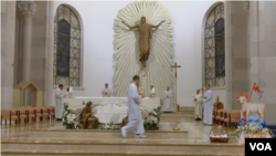 Katedralja Shën Tereza në Prishtinë ishte pothuajse e zbrazët të shtunën ndërsa po mbahej mesha e ringjalljes.