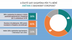 Sipas studimit, afro gjysma e të anketuarve janë të vetëdijshëm se Shqipëria nuk është ende gati për t’u anëtarësuar në BE.