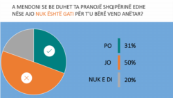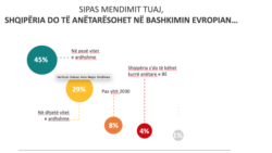 Madje gjysma e të anketuarve mendojnë se BE nuk duhet ta pranojë Shqipërinë në radhët e saj nëse ajo nuk është gati për t’u anëtarësuar.