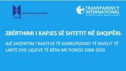 Organizata Transparency International dhe Instituti për Demokraci e Ndërmjetësim publikuan sot në Tiranë një raport mbi kapjen e shtetit, korrupsionin e lartë dhe ligjet me porosi.