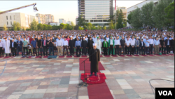 Mijëra besimtarë myslimanë shqiptarë festuan sot Kurban Bajramin me falje dhe këngë në sheshin Skënderbej.