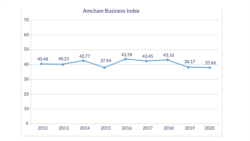 Ky është niveli më i ulët i Indeksit të Besimit që nga viti 2012, kur nisi kjo matje e përvitshme e cilësisë së klimës së bizmesit nga Dhoma Amerikane e Tregtisë për anëtarët e saj, aktualisht 220 kompani vendase dhe shumëkombëshe.