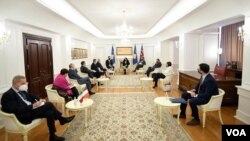 Në një deklaratë të përbashkët të presidentes Vjosa Osmani, kryeministrit Albin Kurti dhe kryetarit të parlamentit Glauk Konjufca, pas takimit me diplomatët e pesë vendeve kryesore perëndimore dhe Bashkimit Evropian, thuhet se “mbajtja e referendumit është shkelje e tërësisë tokësore nga ana e Serbisë në raport me shtetin e pavarur e sovran të Kosovës".