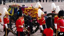 Pas meshës solemne, arkivoli i Mbretëreshës i vendosur në një shtrat topi përshkoi rrugët e Londrës, për t’u përcjellë në Kështjellën Windsor ku ajo do të prehet në paqe, pranë bashkëshortit të saj të ndjerë Princit Philip.
