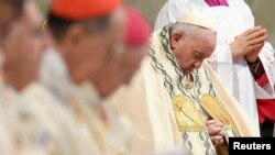 Më vonë në bekimin e tij të së dielës në Sheshin e Shën Pjetrit, Françesku bëri një tjetër thirrje për t'i dhënë fund konfliktit në Ukrainë, duke thënë se lufta ishte në "kontrast të patolerueshëm" me paqen.