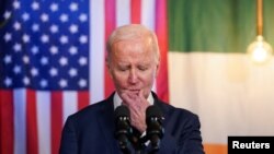 “Do dëgjoj”, u përgjigj Presidenti Biden kur u pyet nga një gazetar se çfarë do t’u thoshte partive politike të Irlandës së Veriut.