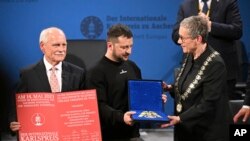 Gjatë qëndrimit në Gjermani, presidenti ukrainas u nderua me çmimin prestigjoz Karli i Madh “Charlemagne”. Ai e mori çmimin në qytetin e Ahenit ku udhëtoi me helikopter së bashku me Kancelarin Scholz.