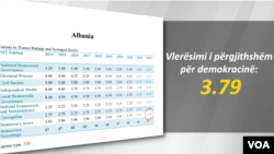“Megjithatë, vendi bëri pak përparim të qëndrueshëm drejt shndërrimit në një demokraci liberale të vërtetë dhe ende klasifikohet si një demokraci hibride. Shumica e udhëheqësve politikë shqiptarë mbetën armiqësorë ndaj vlerave liberale demokratike dhe kanë treguar pak vlerësim për faktin se barazia nën ligj dhe respektimi i shtetit të së drejtës, janë vlera të rëndësishme demokratike”, thuhet në raport.