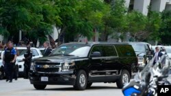 Mbështetësit brohoritën "Ne e duam Trumpin" ndërsa autokolona e tij u largua nga gjykata në orën 15:55, afërsisht dy orë pas mbërritjes. Zoti Trump është ish-presidenti i parë që akuzohet për krime federale.