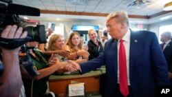 Pas seancës ku iu ngritën akuzat zyrtarisht ndaj të cilave ai deklaroi pafajësinë, ish-presidenti Donald Trump ndaloi tek një restorant kuban në Miami për të përshëndetur mbështetësit e tij.