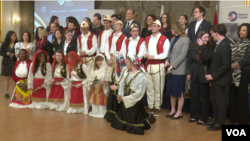 Grupi më i ri i vullnetarëve amerikanë të Korpusit të Paqes, teksa kërcejnë disa valle shqiptare nga zona të ndryshme të Shqpërisë.