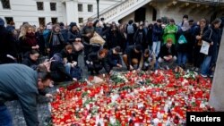 Qytetarët ndezën qirinj jashtë selisë së universitetit në zonën mesjetare të qytetit.