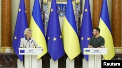 “Ne duhet ta detyrojmë Rusinë të paguajë për shkatërrimin që shkaktoi”, u tha gazetarëve presidentja e Komisionit Evropian Ursula von der Leyen në një konferencë shtypi në Kiev me Presidentin Vlodymyr Zelensky.