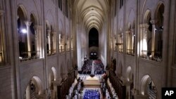 Në Katedralen Notre Dame të Parisit u mbajt sot mesha e parë në pesë vjet, një ditë pasi ajo u rihap me një ceremoni zyrtare. Presidenti i zgjedhur i Shteteve të Bashkuara Donald Trump dhe zonja e parë Jill Biden iu bashkuan dhjetëra krerëve të shteteve në ceremonitë e rihapjes së Katedrales të shtunën, pesë vjet pasi ndërtesa ikonike e Parisit i shpëtoi shkatërrimit total nga një zjarr i madh. Ceremonitë, përfshirë dy mesha të mbajtura sot, ofrojnë një moment shkëlqimi për Francën mes paqëndrueshmërisë politike në vend.