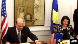 Presidentja e Kosovës Atifete Jahjaga dhe Ambasadori i Shteteve të Bashkuara të Amerikës, Christopher Dell, nënshkruan sot në Prishtinë, marrëveshjen e parë gjithëpërfshirëse dypalëshe në mes të Qeverisë së Shteteve të Bashkuara të Amerikës dhe Republikës së Kosovës.