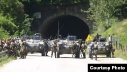 Operacioni KFOR-it, nxiti protestat e serbëve lokal të cilët u mblodhën në afërsi të vendkalimit kufitar për të kundërshtuar mbylljen e rrugëve dytësore. Mjetet serbe të informimit thanë se dy pjesëtarë të komunitetit serb janë plagosur lehtë gjatë protestës.