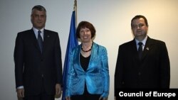 Kryeministrat e Kosovës dhe Serbisë, Hashim Thaçi e Ivica Daçiç, u takuan mbrëmë në Bruksel me ndërmjetësimin e shefes së politikës së jashtme të Bashkimit Evropian, Catherine Ashton, për të vazhduar bisedimet e filluara më 19 tetor, në takimin e parë të tyre.