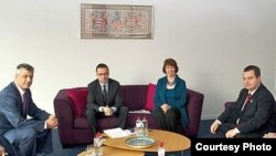 Shefja e politikës së jashtme të Bashkimit Evropian Catherine Ashton ka kryeministrin e Kosovës Hashim Thaçi dhe atë të Serbisë Ivica Daçiç në një takim në Bruksel këtë të mërkurë.