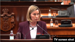 Shefja e politikës së jashtme të Bashkimit Evropian, Federica Mogherini, i bëri thirrje Serbisë të premten që të qëndrojë në orientimin e saj drejt integrimeve evropiane, në një fjalim në parlamentin serb që pengua nga brohoritjet pro ruse të deputeteve radikal.